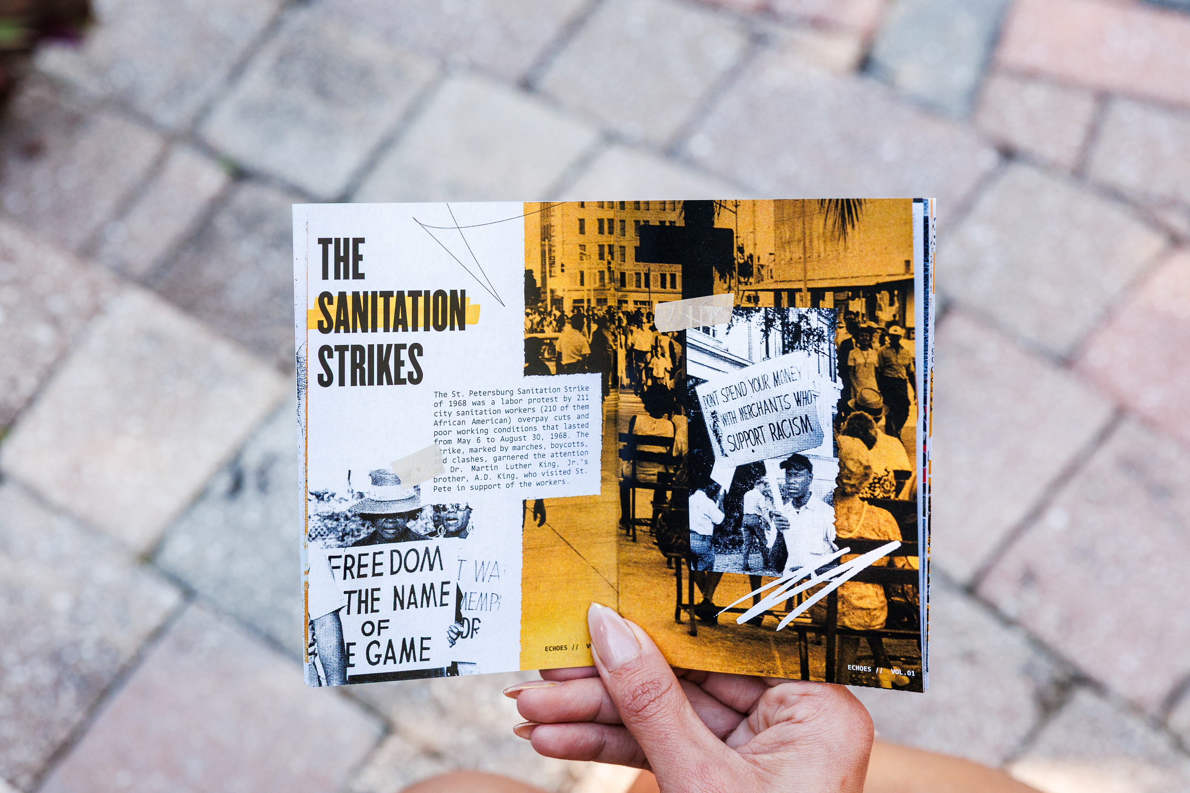 ECHOES: VOL. 1 is a collaborative love letter to St. Petersburg’s rich African American history, and to the people who continue shaping it today. Created for Black History Month, this zine brings together local youth, artists, writers, elders, and leaders to celebrate Black culture, creativity, and legacy through design and storytelling. Within these pages, past and present meet: voices, visuals, memories, and moments that honor where we’ve been while uplifting where we’re going.
